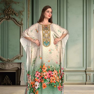 Our print designs for Long kaftan dresses feature bold and eye-catching patterns that are sure to make a statement in any room.